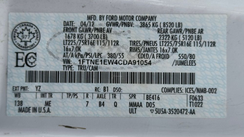 2012 Ford Econoline Cargo Van Commercial E-150