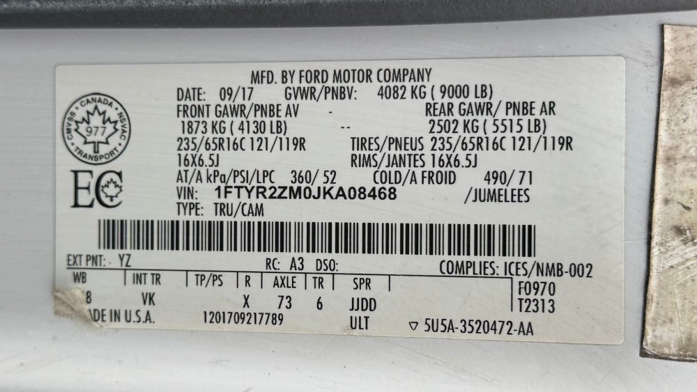 Home > 2018 Ford Transit VAN T-250 148″ LOW RF 9000 GVWR SWING-OUT RH DR