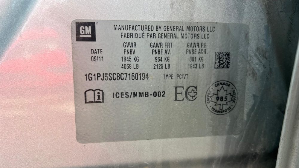 2012 Chevrolet Cruze Eco W/1SA SDN
