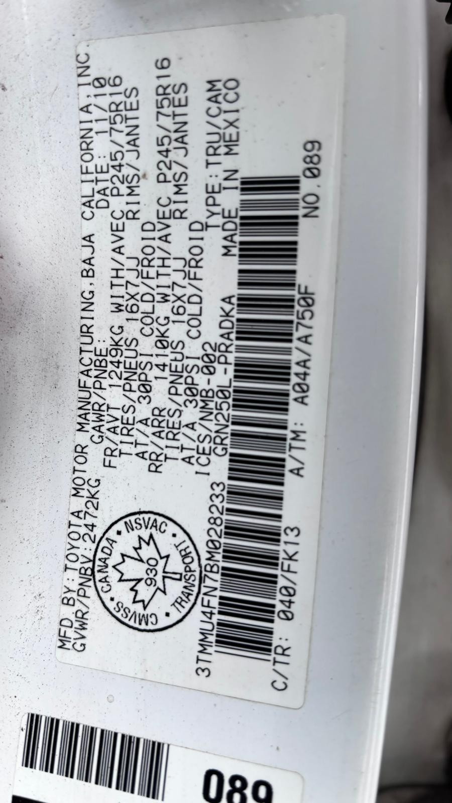 Home > 2011 Toyota Tacoma Crew Cab Std Bed